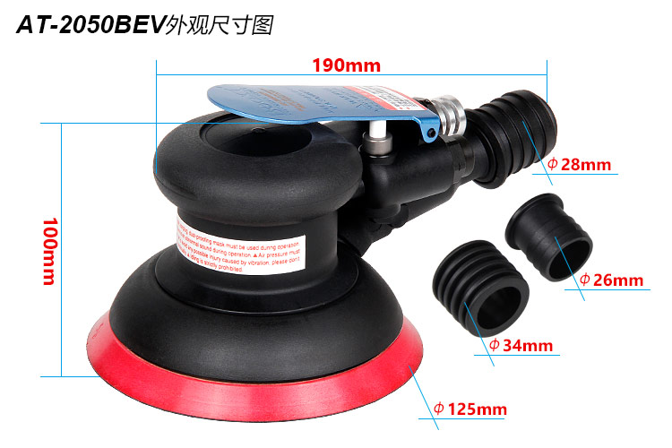 • 產(chǎn)品參數(shù): 底盤尺寸:125mm 【5寸】 空載轉(zhuǎn)速:12000rpm 偏擺直徑:9.5mm 重 量:0.94kg 耗 氣 量:0.53m3/min 噪 音 值:78db(A)(粗磨/中央吸塵/工業(yè)型)