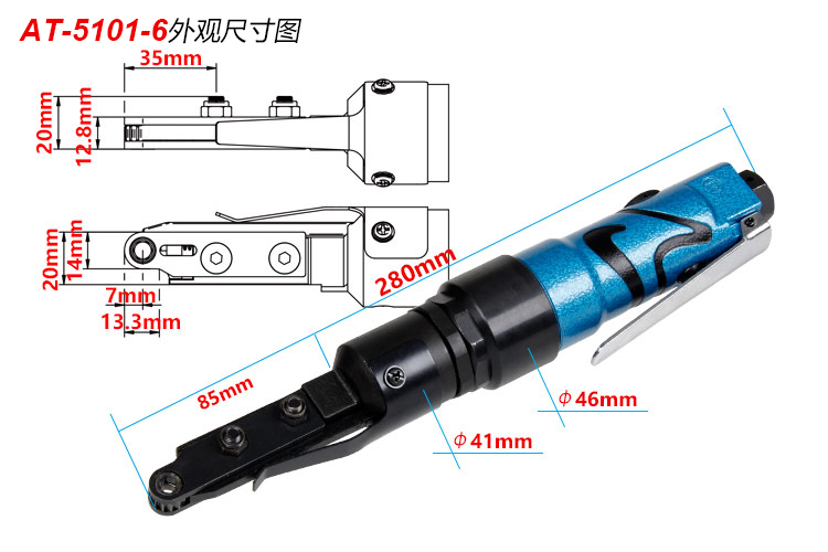 M6超小氣動(dòng)穿孔扳手特點(diǎn):(重力壓鑄外殼,強(qiáng)度更高不變形,提高耐用度)