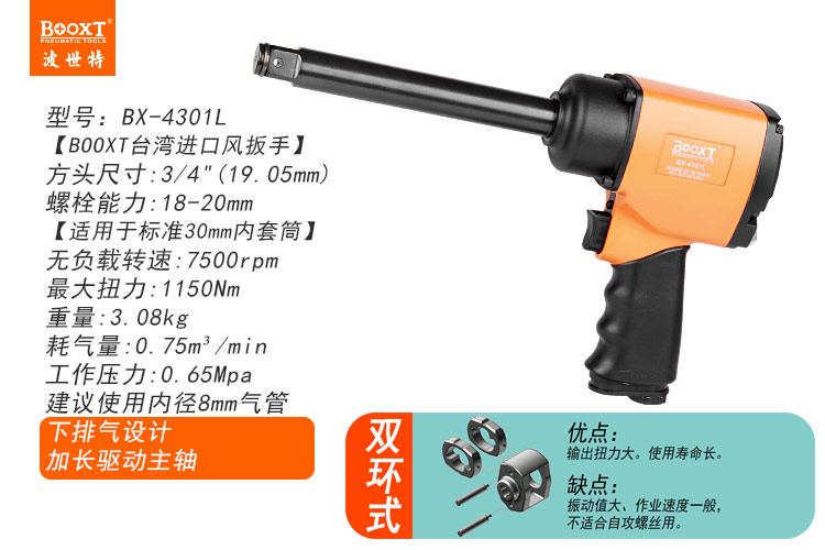 東莞市強勁五金工具有限公司提供臺灣BOOXT波世特品牌氣動工具,槍型小風炮BX-4301L廠家直銷,首件享特價。咨詢熱線:4008301980