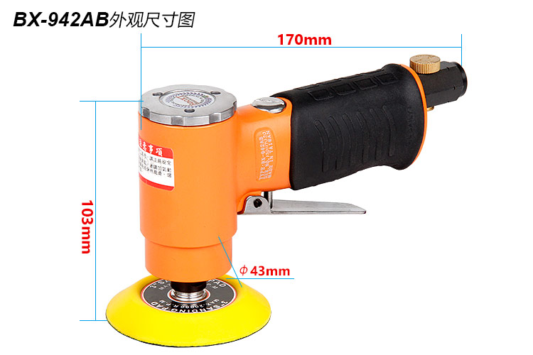• 產(chǎn)品參數(shù): 底盤尺寸:50/75mm 【2/3寸】 空載轉(zhuǎn)速:15000rpm 工具全長:170mm 重 量:0.68kg 耗 氣 量:0.38m3/min 【工業(yè)型/同心/高速】