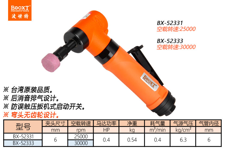 東莞市強勁五金工具有限公司提供臺灣BOOXT波世特品牌氣動工具,直角風磨機BX-52333廠家直銷,首件享特價。咨詢熱線:4008301980