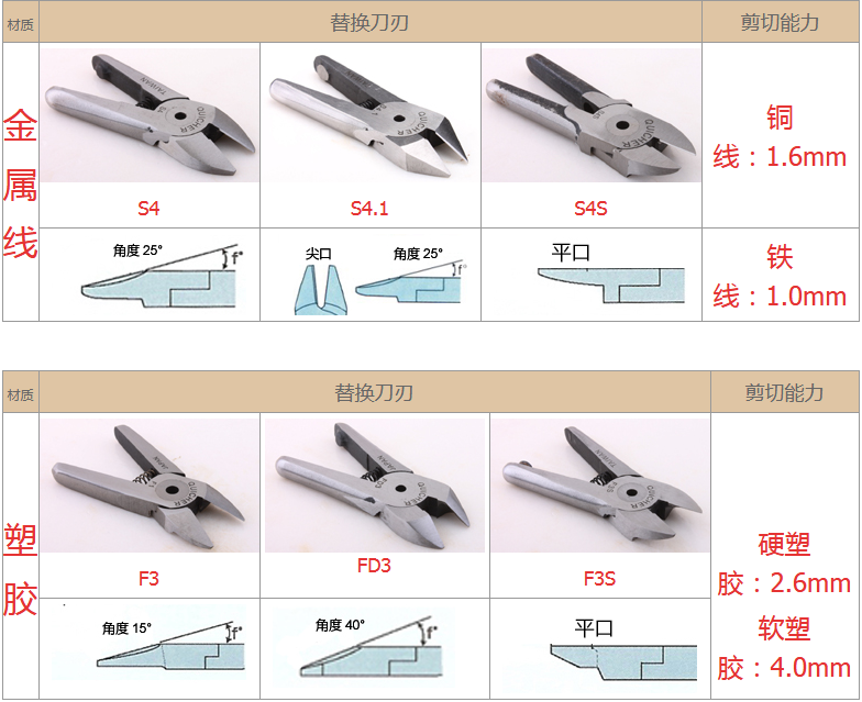 2.注意材質(zhì):材質(zhì)對(duì)選配刀刃非常重要,例如客戶要剪的銅鐵、材質(zhì)有鍍鈦、鍍烙、塑料材質(zhì)、加纖維超過20% 時(shí),一般刀刃不是剪不斷,就是使用壽命大大減少,塑料還容易在剪斷過程中碎裂。在這情形S刀刃應(yīng)選擇Z刀,塑料則建議使用電熱剪。