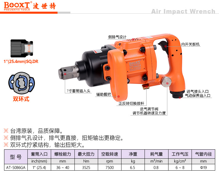 東莞市強勁五金工具有限公司提供臺灣BOOXT波世特品牌氣動工具,超輕氣動風炮AT-5086GA廠家直銷,首件享特價。咨詢熱線:4008301980